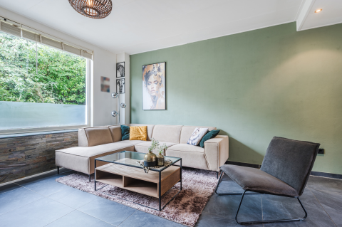 • Gezellige, tuingerichte woonkamer met schuifpui, veel licht en directe toegang tot de tuin